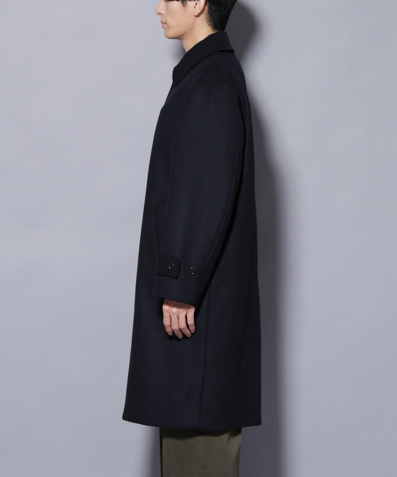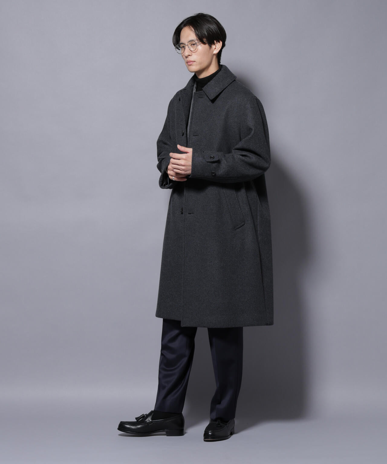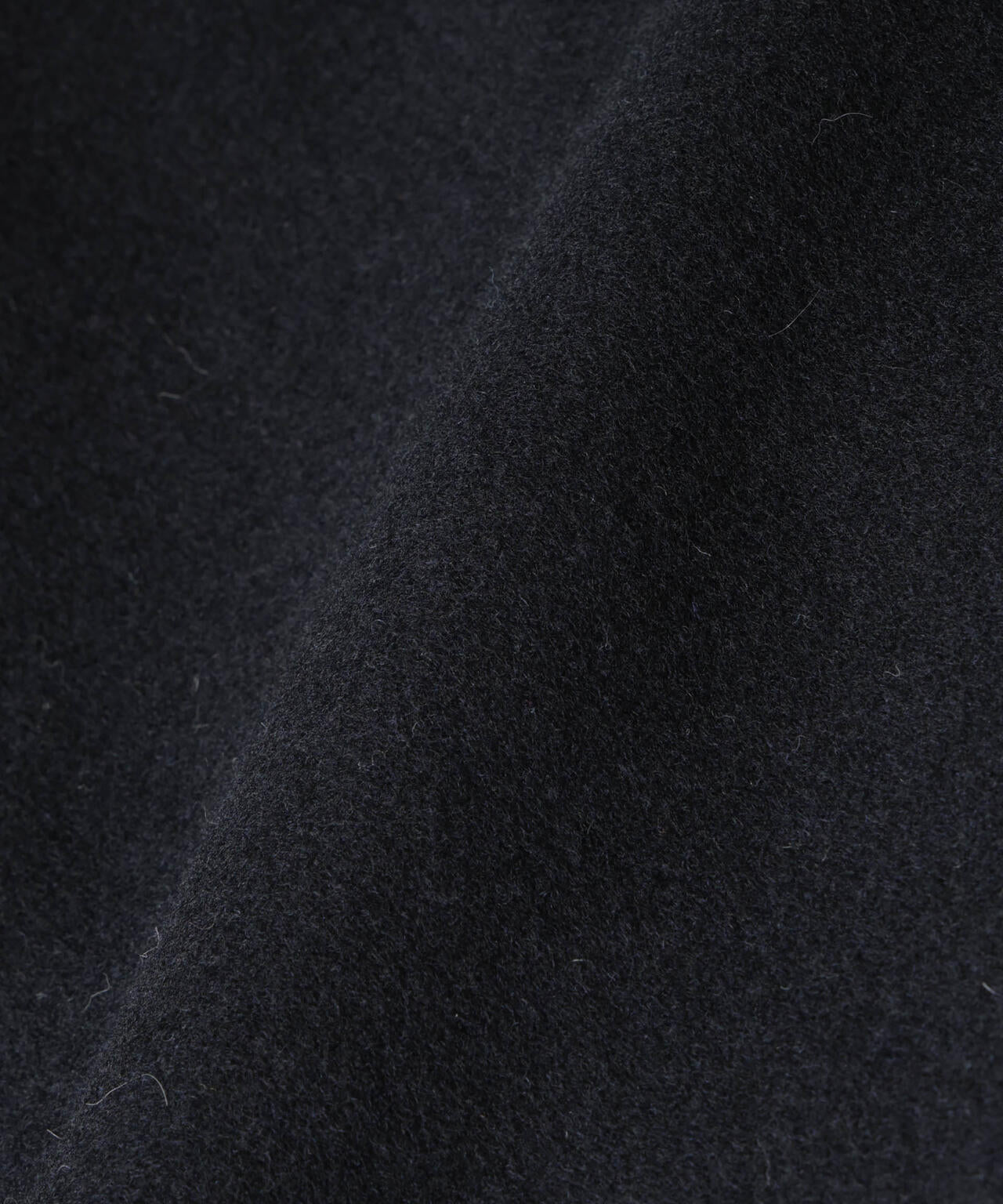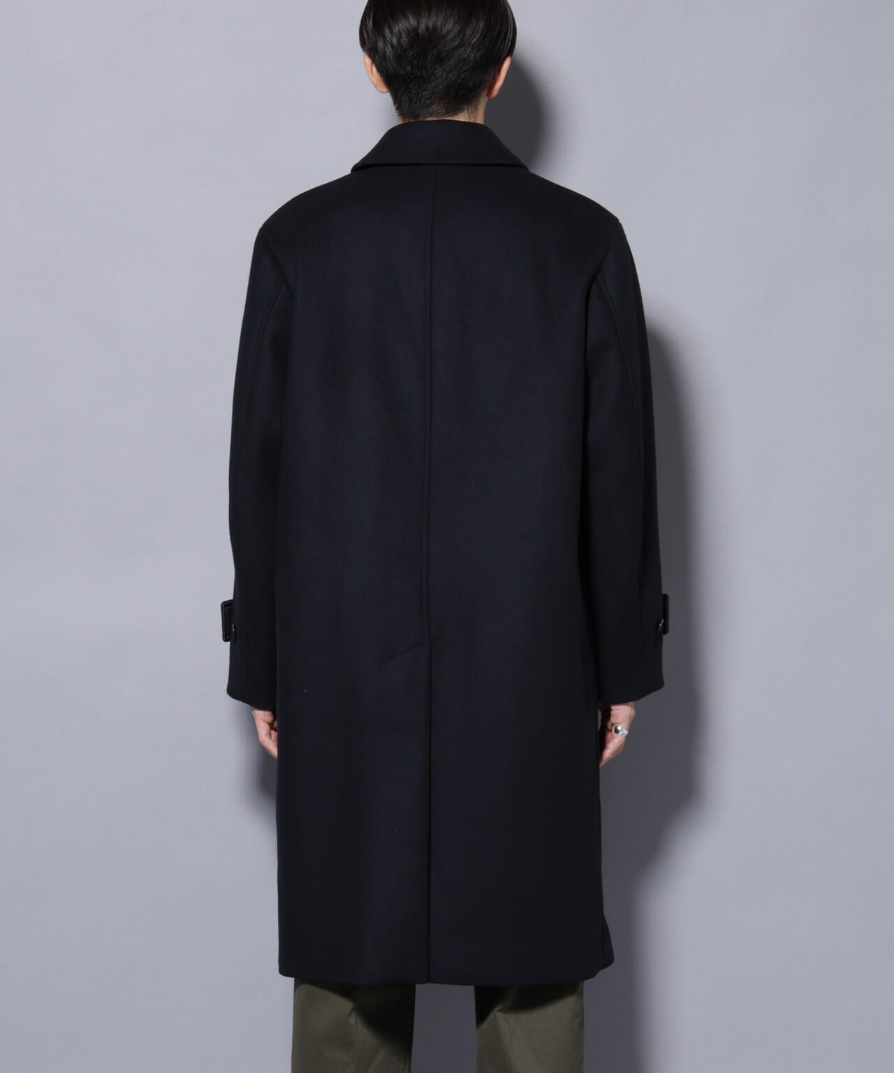 カシミヤミックスの上質な糸を使い、ふんわりとなだらかな肌触りで仕上げた、ナノユニバースオリジナルファブリックのソフトメルトンシングルコート。