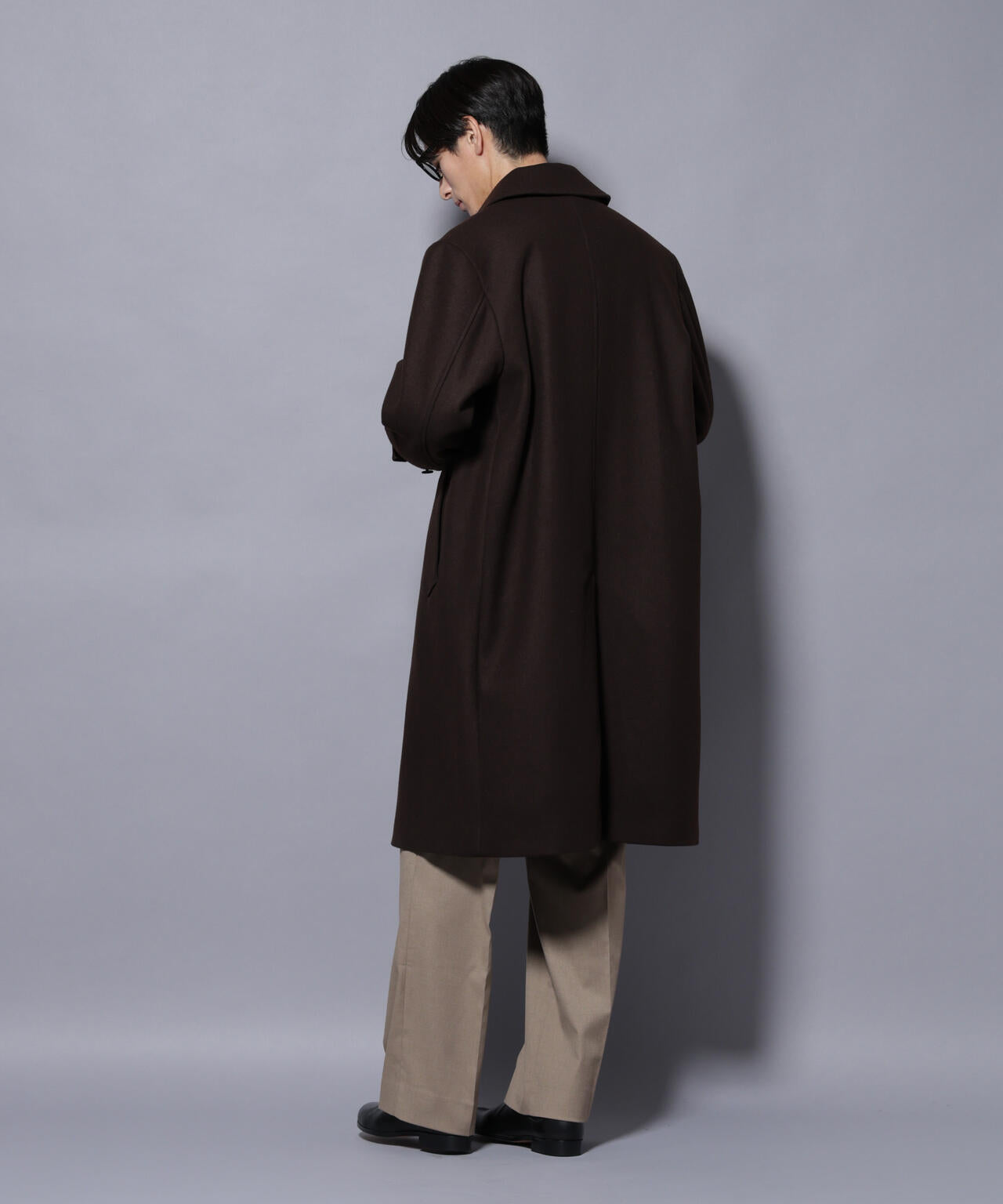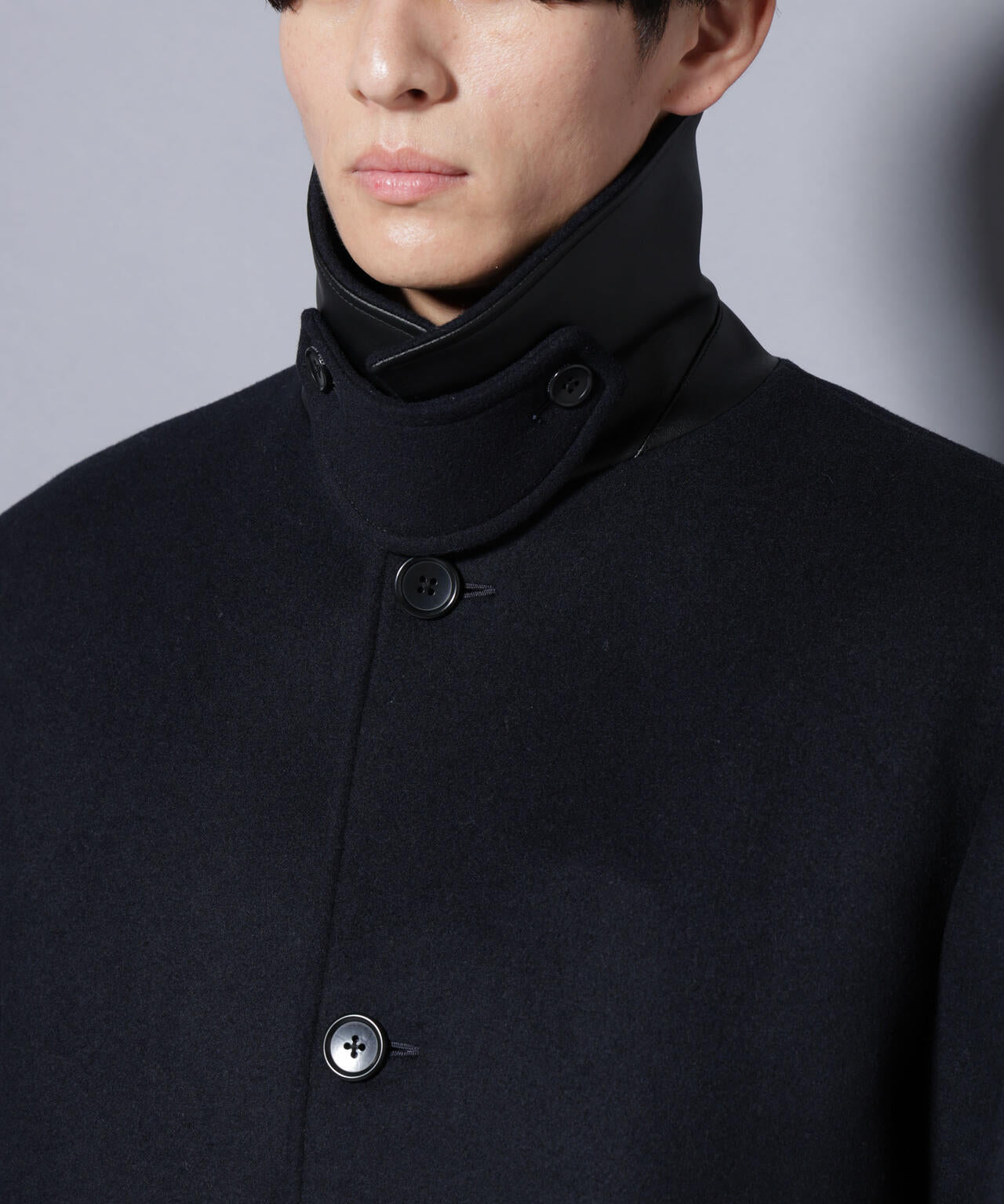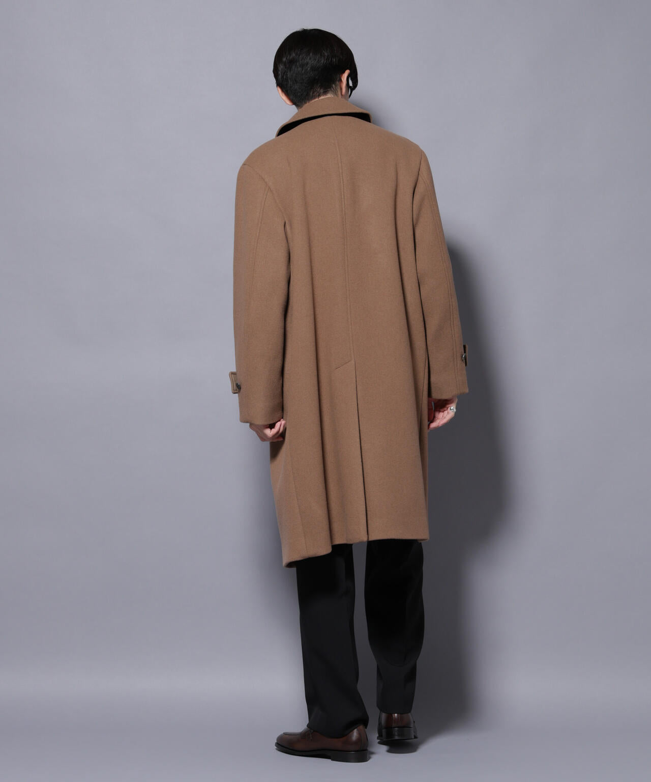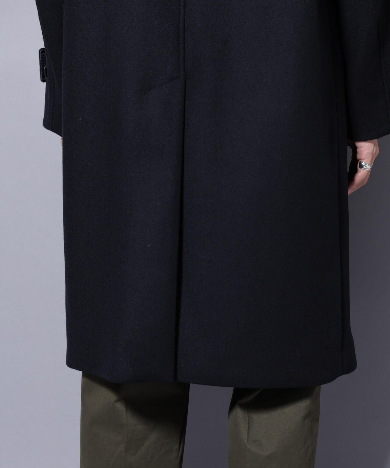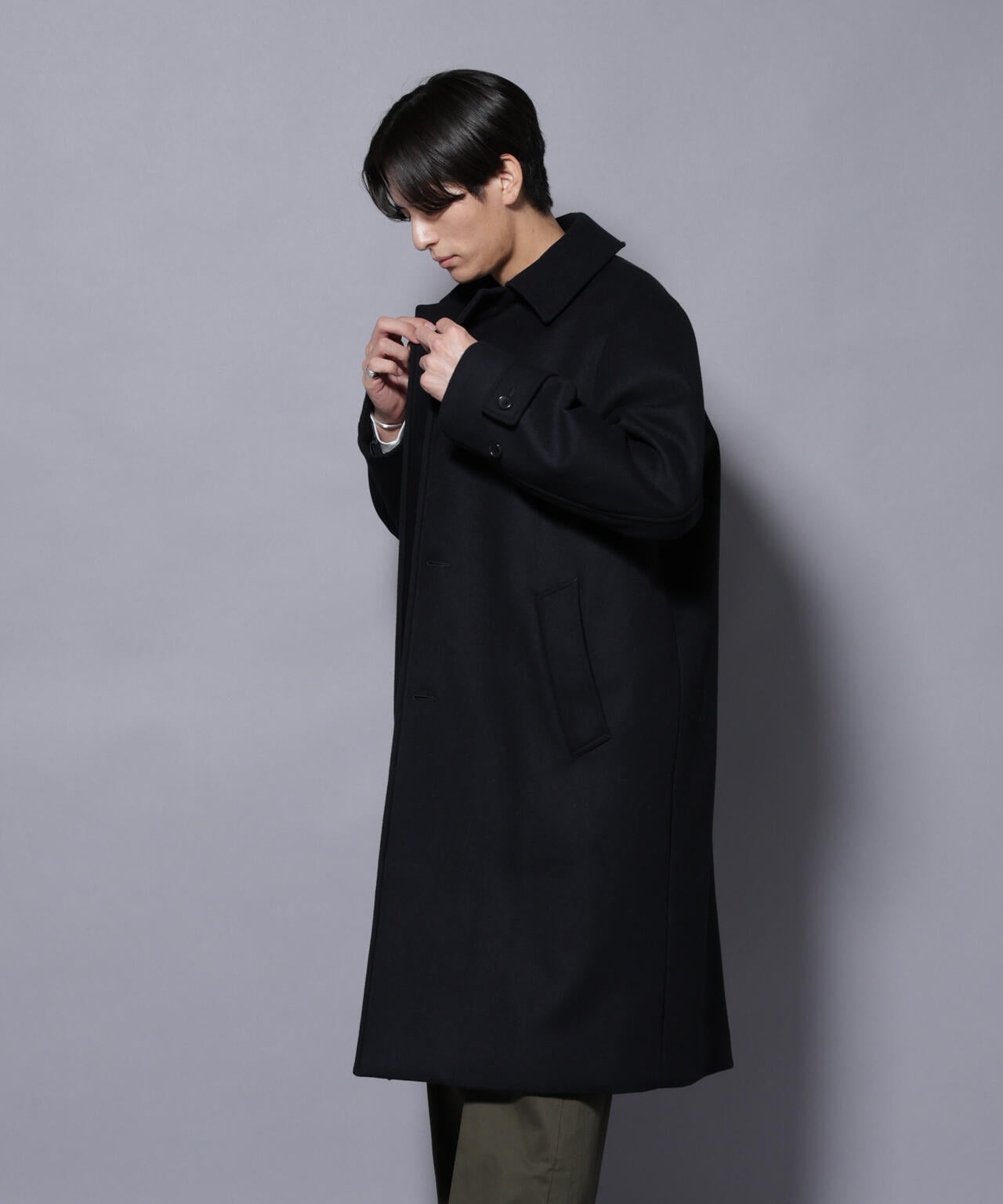 カシミヤミックスの上質な糸を使い、ふんわりとなだらかな肌触りで仕上げた、ナノユニバースオリジナルファブリックのソフトメルトンシングルコート。