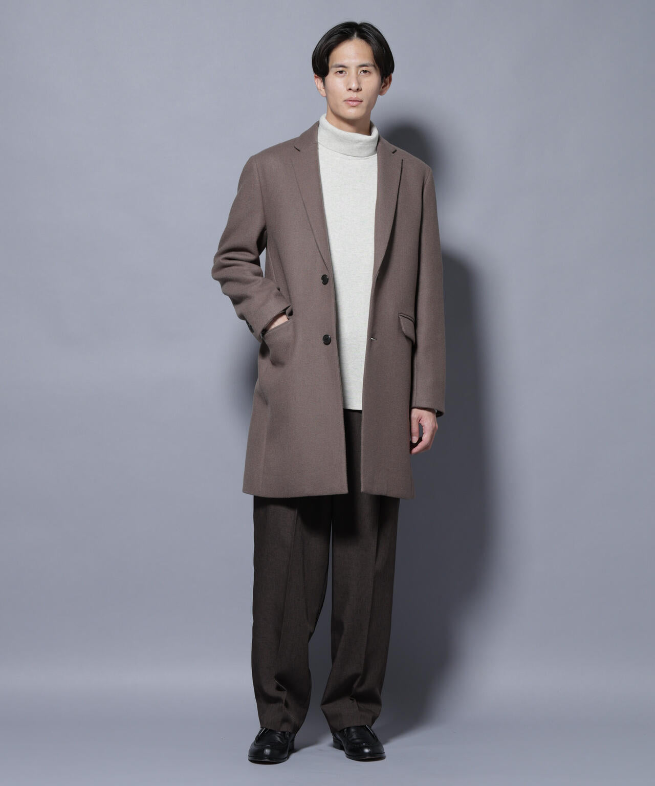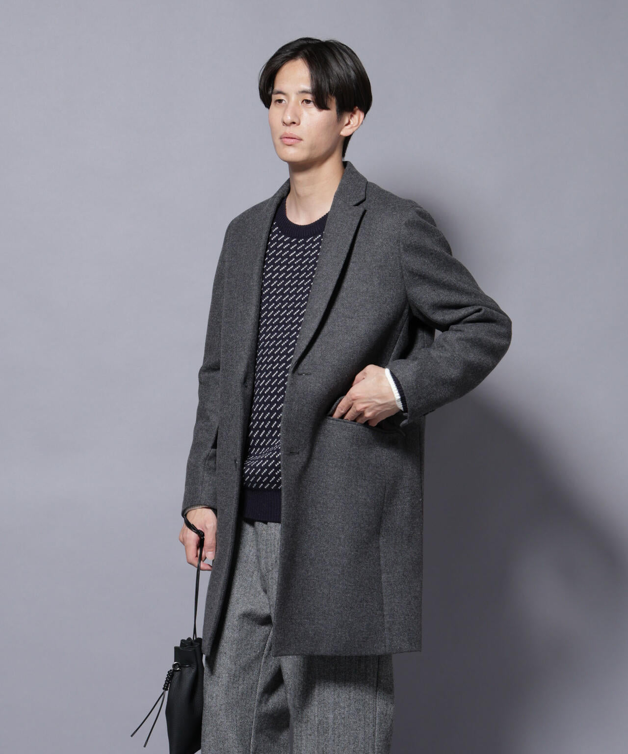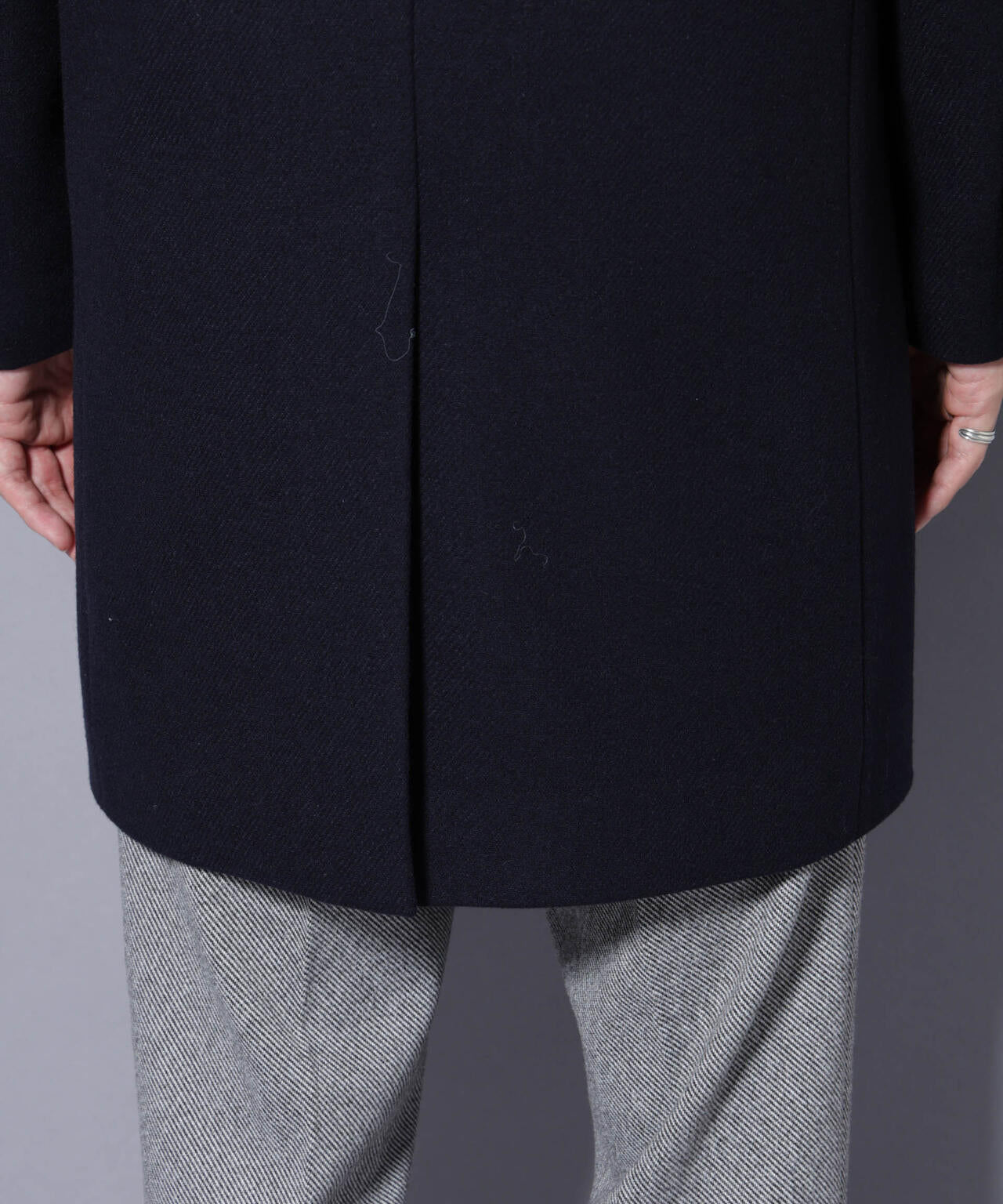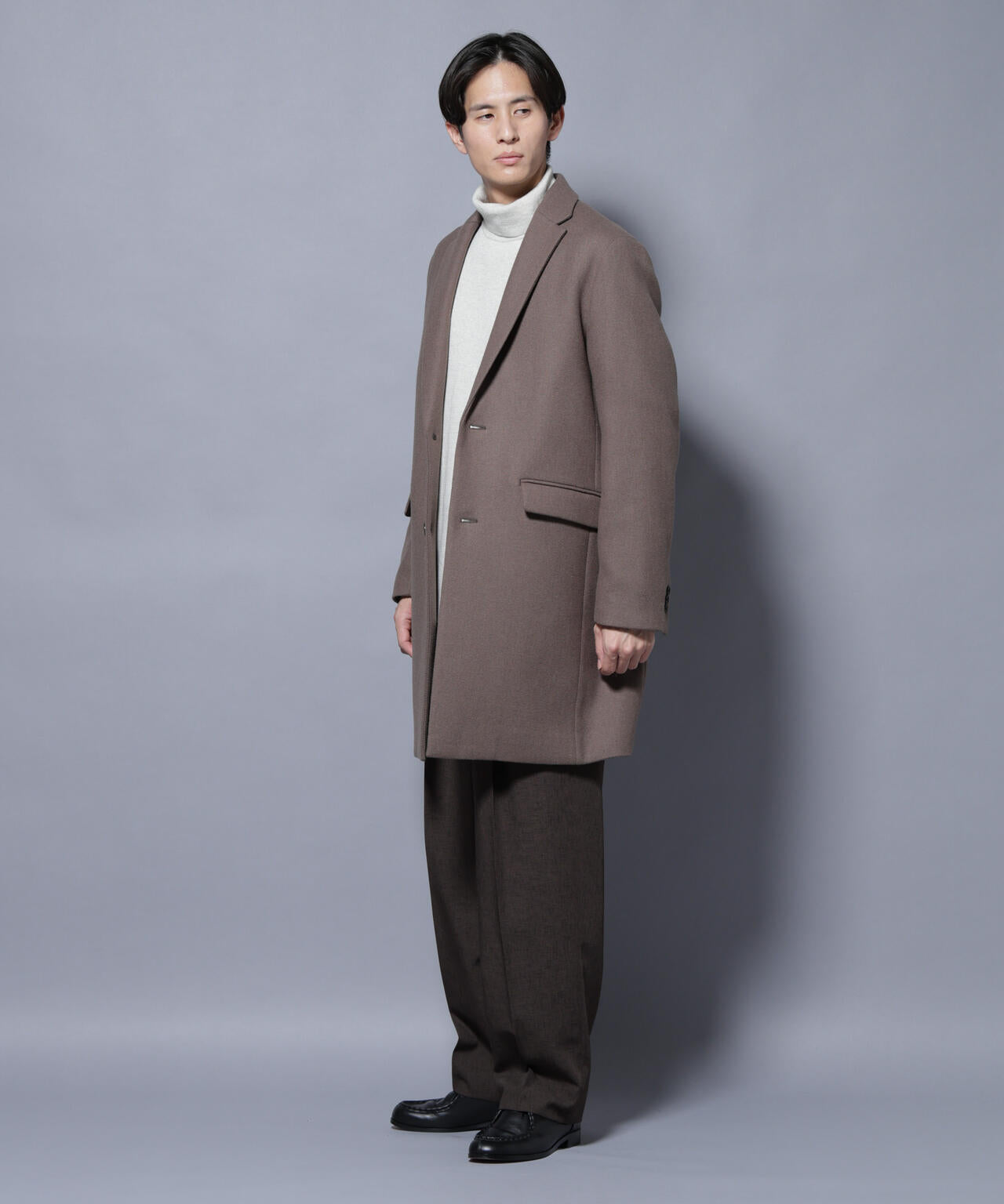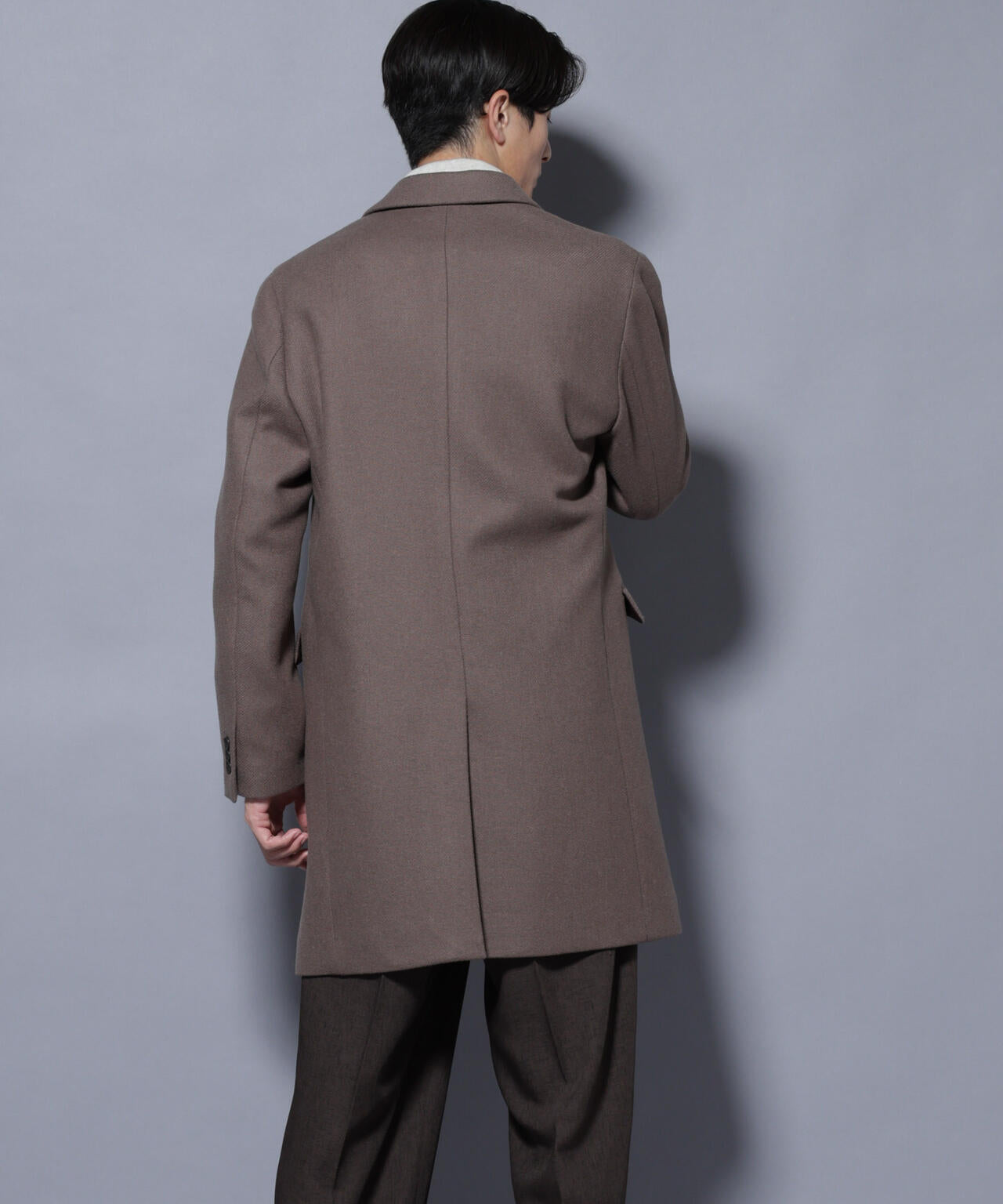 柔らかなウールブレンドメルトン素材で仕上げた、王道かつ洗練されたチェスターコート。細身でシャープなシルエットに、ややシェイプを効かせたウエストラインがスタイルをすっきり見せてくれる一着。ビジネスシーンはもちろん、休日のカジュアルスタイルにも活躍する汎用性の高いアイテムです。