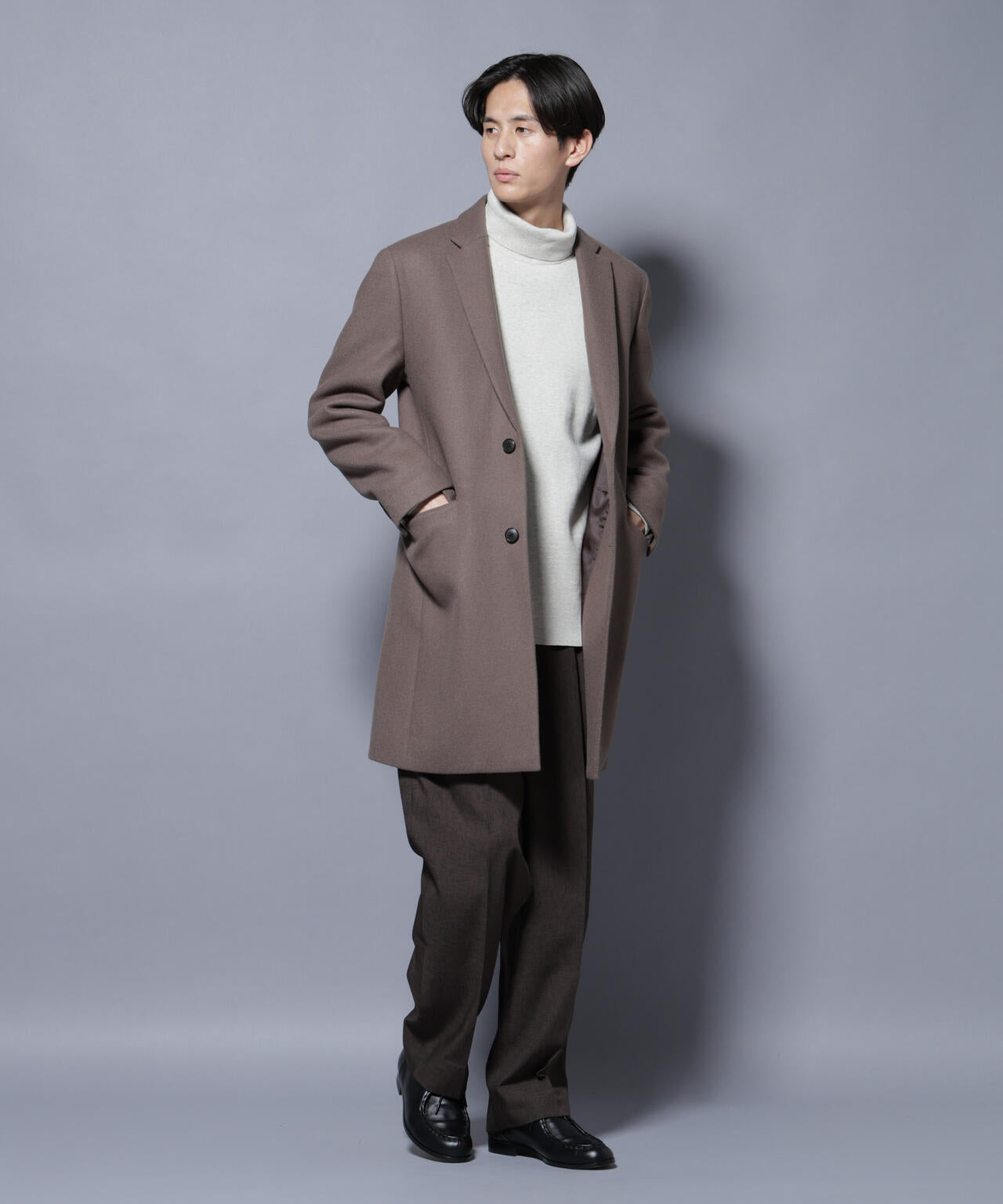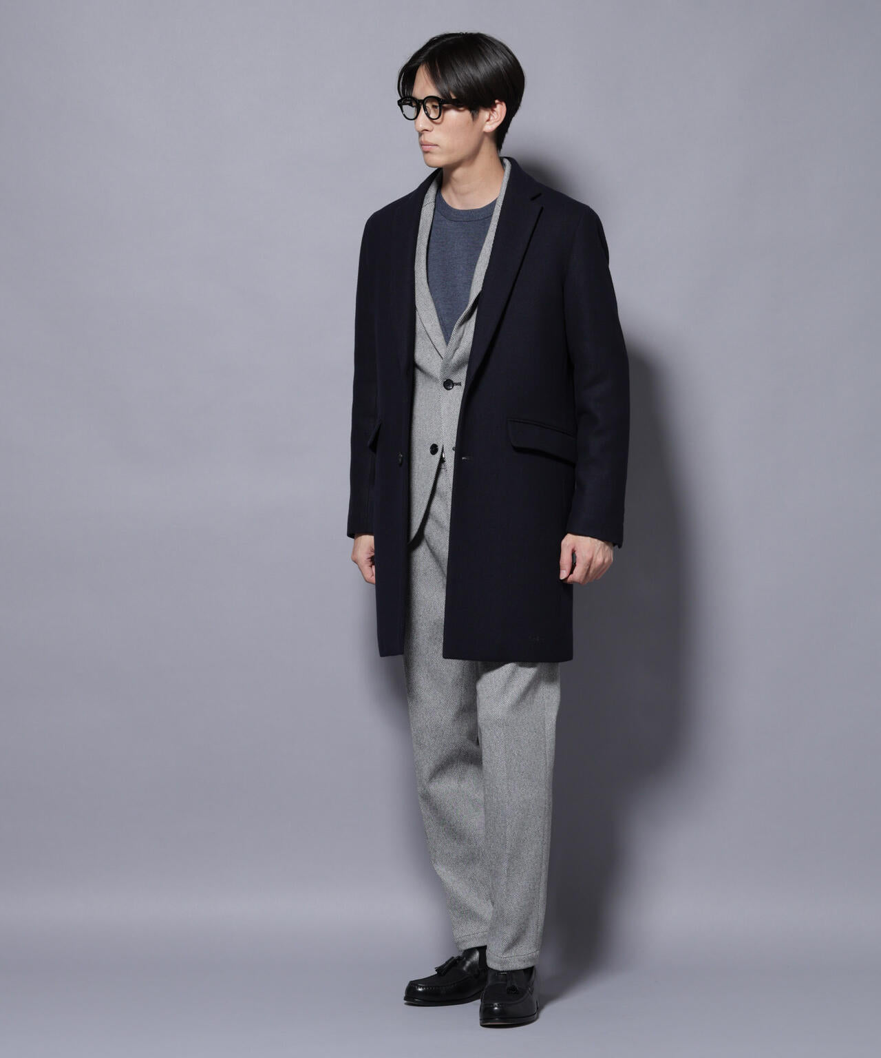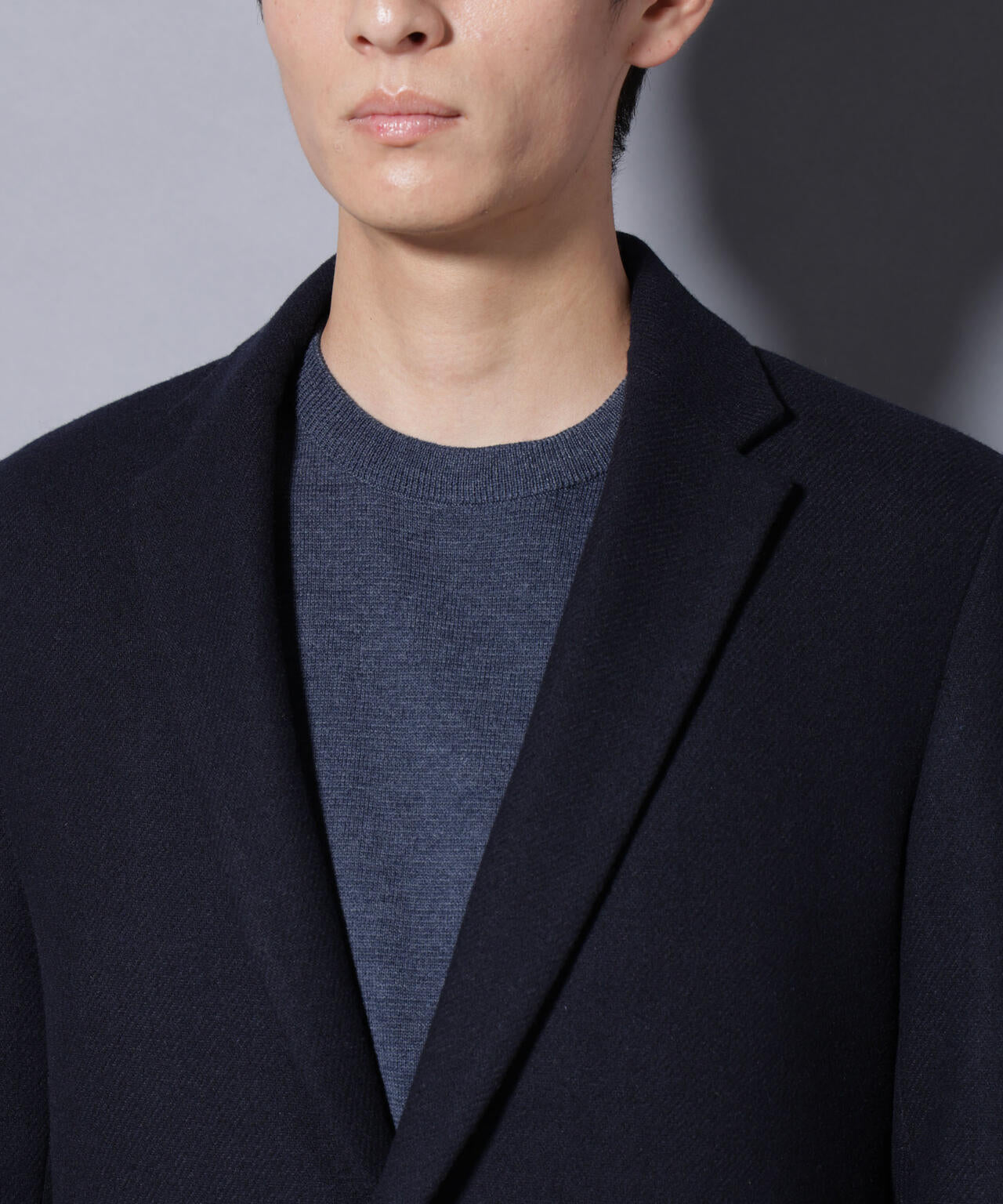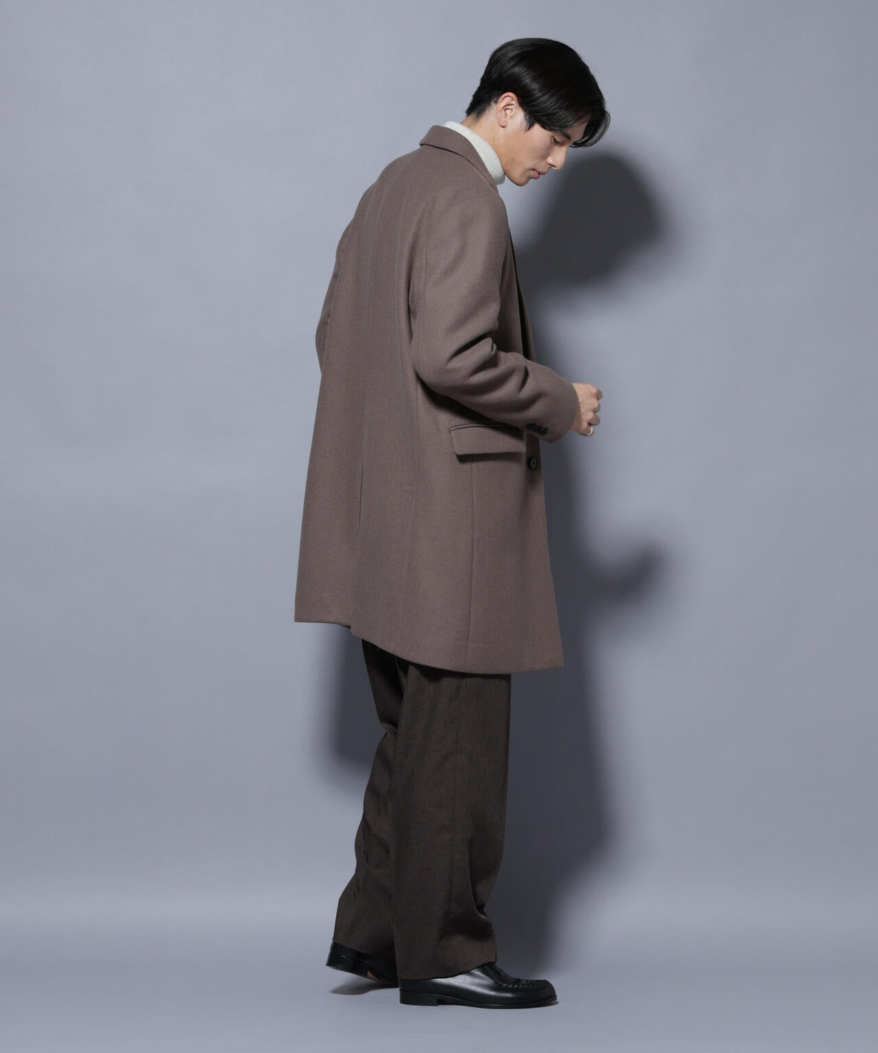 柔らかなウールブレンドメルトン素材で仕上げた、王道かつ洗練されたチェスターコート。細身でシャープなシルエットに、ややシェイプを効かせたウエストラインがスタイルをすっきり見せてくれる一着。ビジネスシーンはもちろん、休日のカジュアルスタイルにも活躍する汎用性の高いアイテムです。