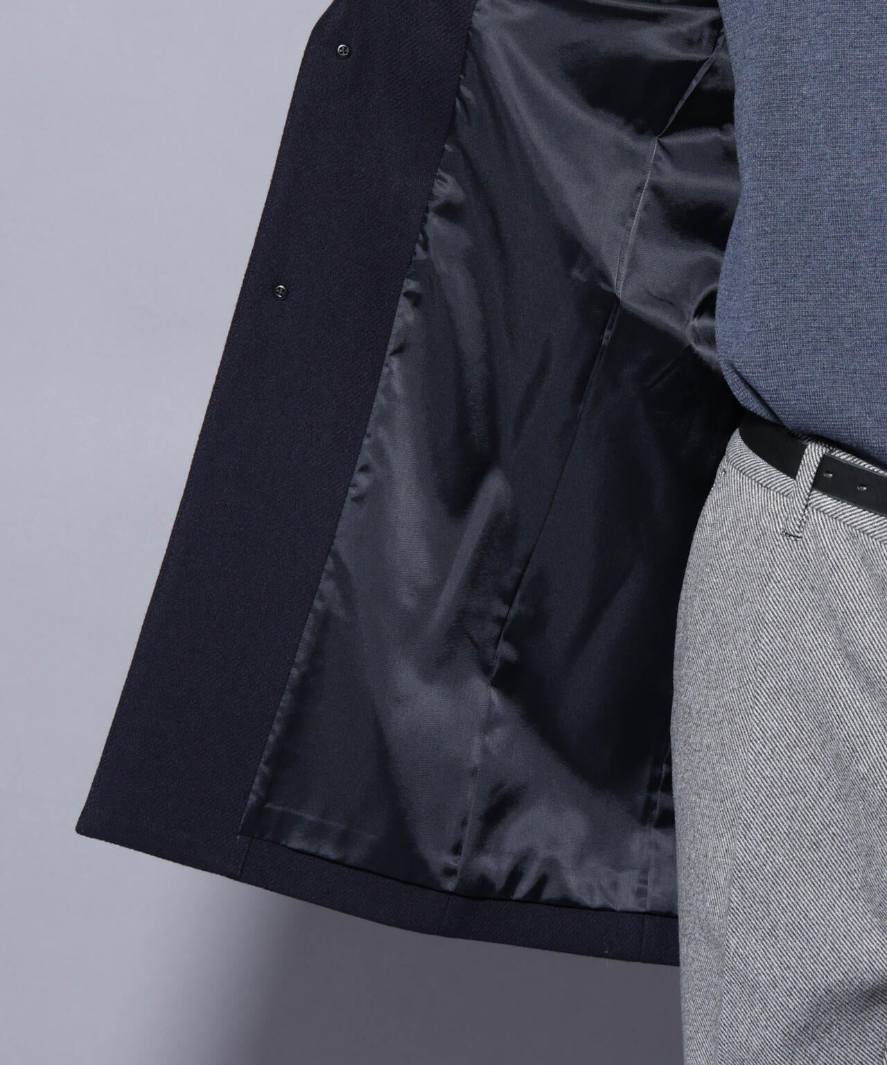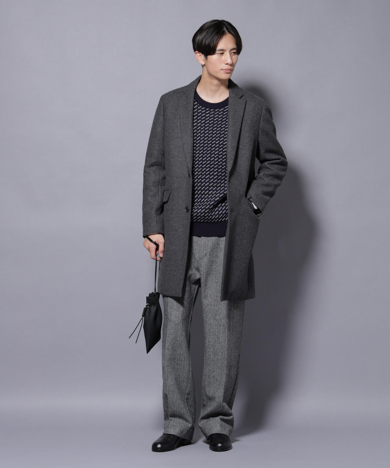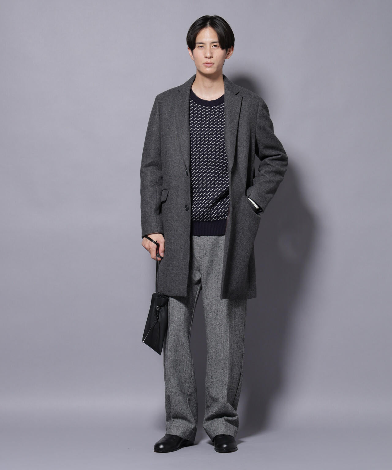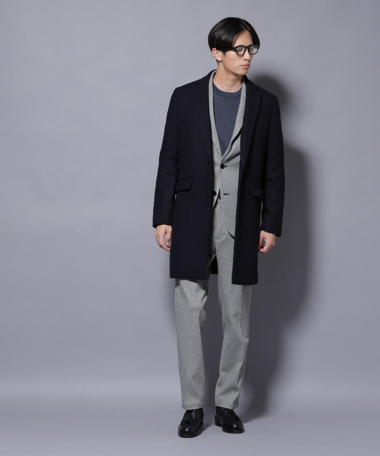 柔らかなウールブレンドメルトン素材で仕上げた、王道かつ洗練されたチェスターコート。細身でシャープなシルエットに、ややシェイプを効かせたウエストラインがスタイルをすっきり見せてくれる一着。ビジネスシーンはもちろん、休日のカジュアルスタイルにも活躍する汎用性の高いアイテムです。
