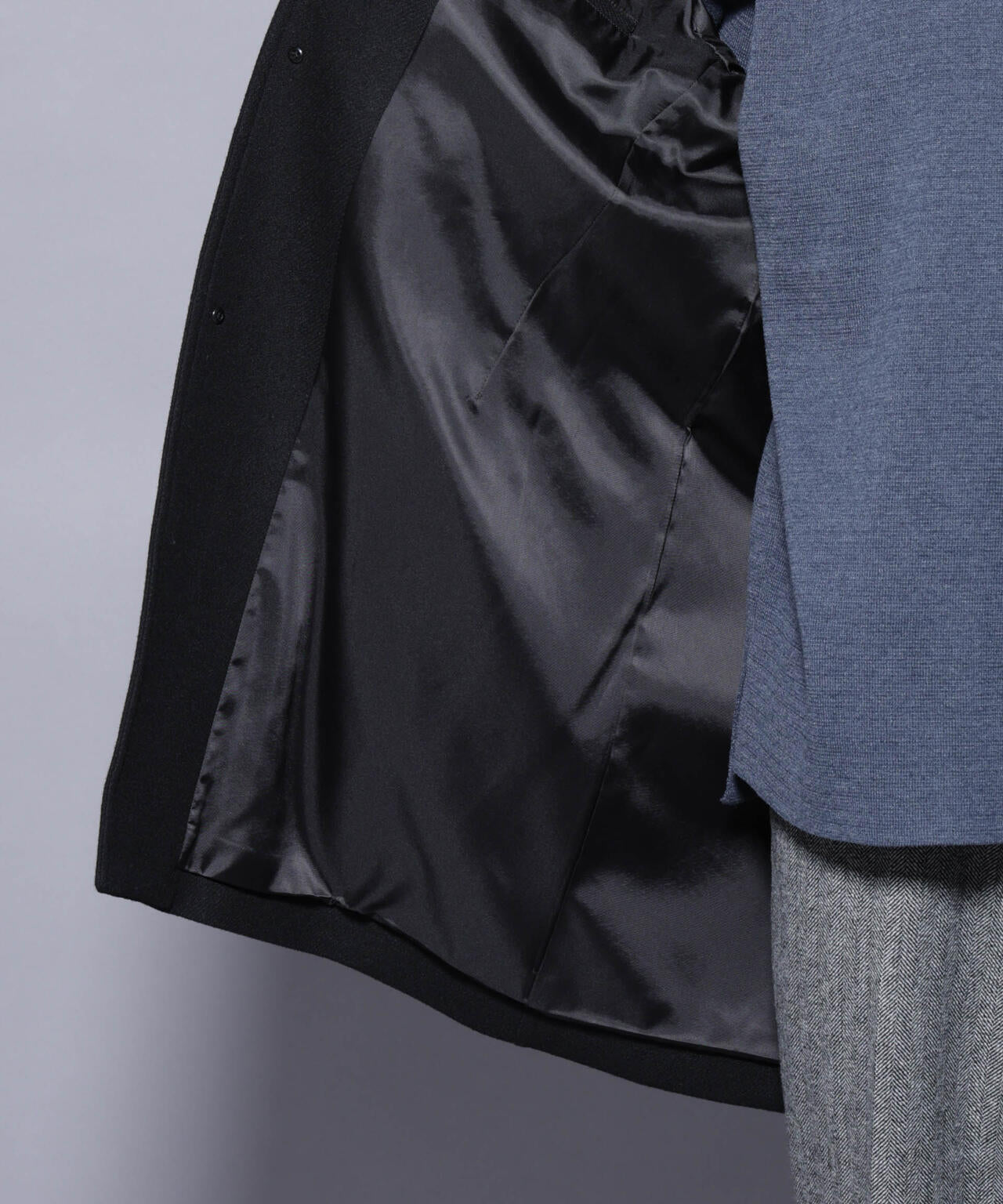 ・比翼仕立てによるミニマルなフロントデザイン